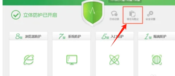 在信任区界面,用户需要切换到“防护记录”或类似的标签页,以查看和管理已经被信任的文件或软件。