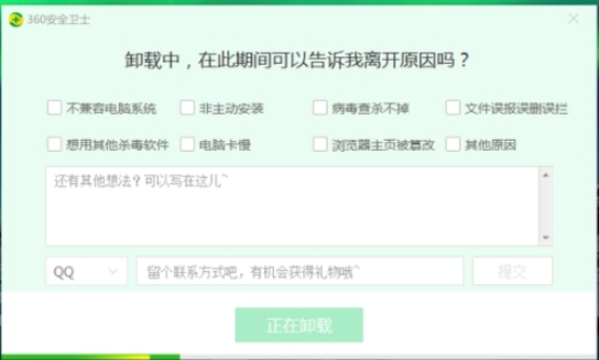 360安全卫士软件开始卸载过程。请等待卸载完成。