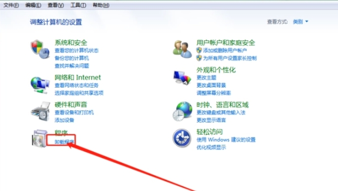 在类别视图中,找到并点击“程序”或“卸载程序”选项,这会列出所有已安装的程序和软件。