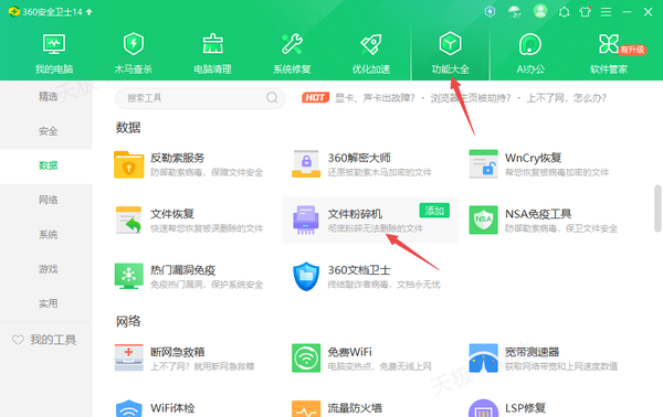根据查找相关的资料来看,目前360文件粉碎机没有独立版本,它是内嵌于360安全卫士当中的功能,因此想要使用该功能的话,就需要大家去下载安装360安全卫士,然后进入到软件的【功能大全】界面,找到【文件粉碎机】功能,点击它即可进行使用了。
