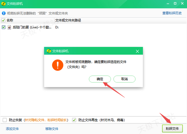 3、最后点击右下角的【粉碎文件】按钮,再点击弹窗中的【确定】按钮即可。