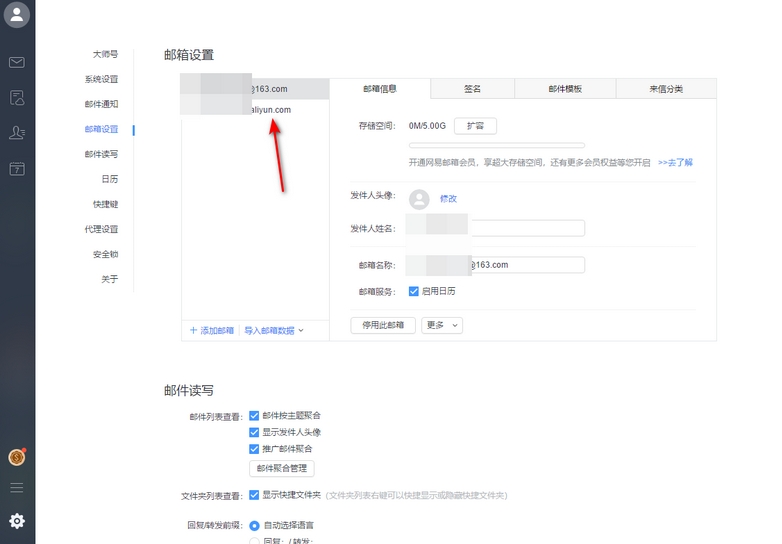 3、邮箱设置下显示出两个账号,用户可根据实际情况删除一个账号;