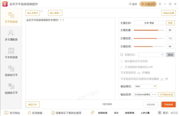 通过以上步骤,您可以轻松将文字转换成各种不同的人声语音。如果您正在寻找一款便捷高效的文字转语音工具,不妨尝试金舟文字语音转换软件,体验其多种人声转换功能带来的便利和乐趣。