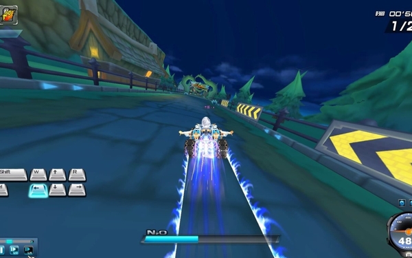 2,当我们在离开地面飞跃到天空的那一瞬间,如果配合着漂移状态,也就是在离开地面的瞬间使用shift键进行漂移并进行空喷的话,可以快速的集满一个NO2氮气。