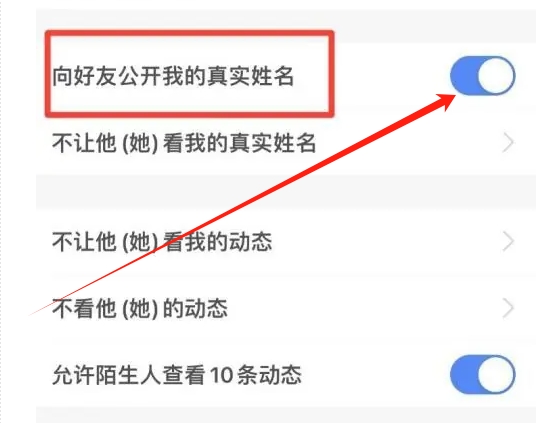 当开关从蓝色变为灰色时,表示该功能已经关闭,您的真实姓名将不再向好友公开。