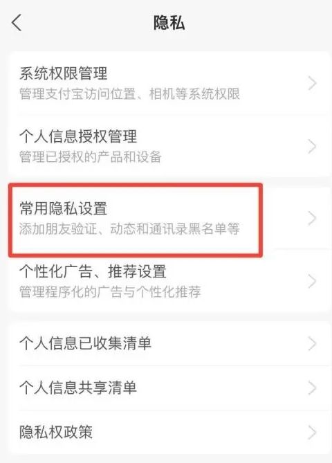 在隐私设置页面,点击【常用隐私设置】。在隐私设置页面,您将看到一系列隐私设置选项,其中就包括“常用隐私设置”。点击它进入常用隐私设置页面。