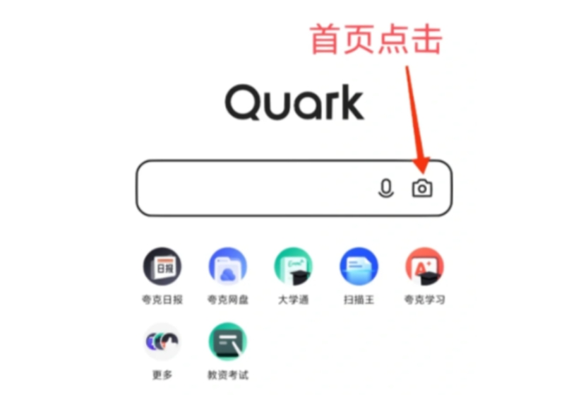 1、打开夸克APP,点击搜索栏中的拍照图标。