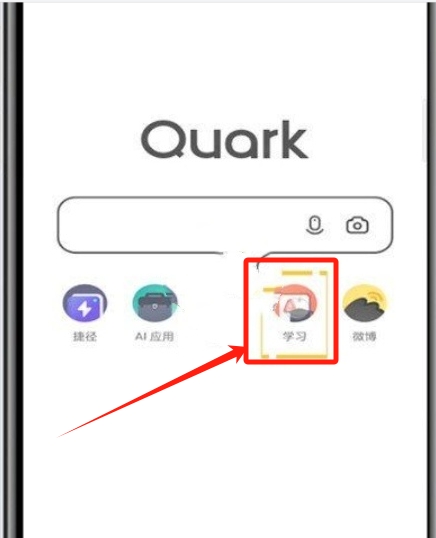 1、打开夸克浏览器,在首页上方找到“学习”选项并点击。