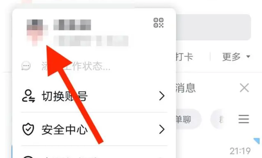 第二步:在展开的弹窗处,再次点击弹窗处的头像标志。