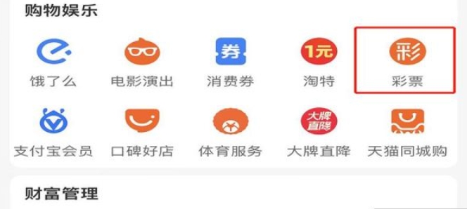 进入更多界面后,下滑页面找到【彩票】选项,并点击进入。