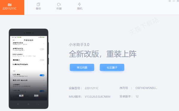 2.确保小米手机的系统版本,以及小米手机助手的版本是最新版本。