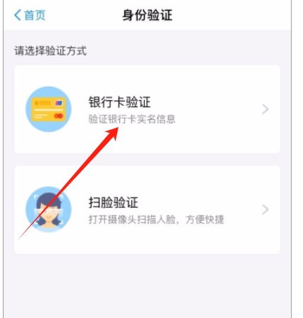 找到并点击“实名认证”选项。需要用户点击继续验证,可能会出现“银行卡验证”或“扫脸验证”的选项。选择“银行卡验证”。