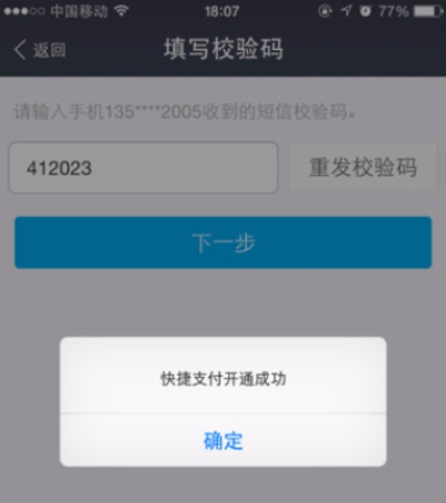 验证成功,会显示实名认证成功,且该卡的快捷支付也开通成功。后续交易可以直接选择该卡进行支付。
