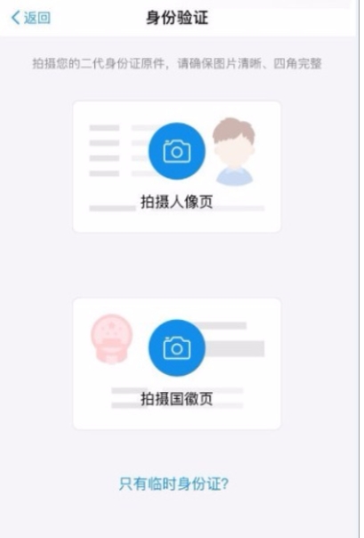 上传身份证后,进行人脸识别,这里需要用户拍摄自己的照片并上传。