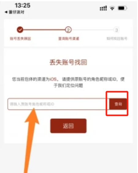 3、根据提示,输入原账号的角色昵称或ID,点击【查询】。