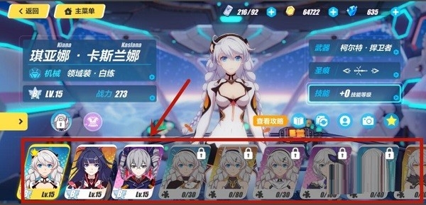 第二步,这时就可以看到自己所拥有的女武神列表了,可以进行选择,如果想更换的人物没有解锁,我们可以先进行解锁。