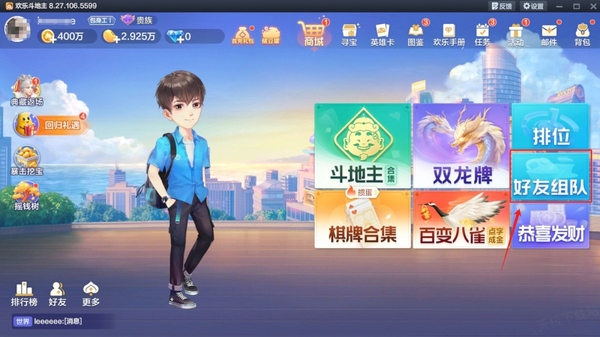 1.首先,打开欢乐斗地主游戏,进入主页界面。在主页上,您会看到“好友组队”选项,点击进入该功能。