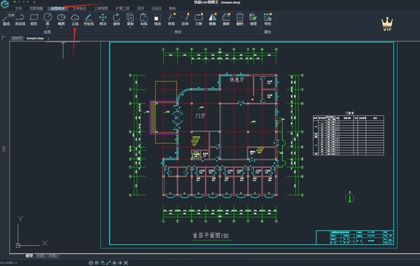 ②在上方模块栏中找到并点击【绘图修改】,然后在此可以找到【云线】,点击后我们就可以在图上绘制云线了。