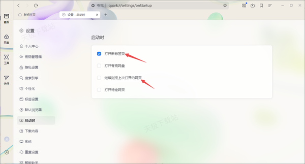 夸克浏览器启动时自动跳转至网盘如何解决