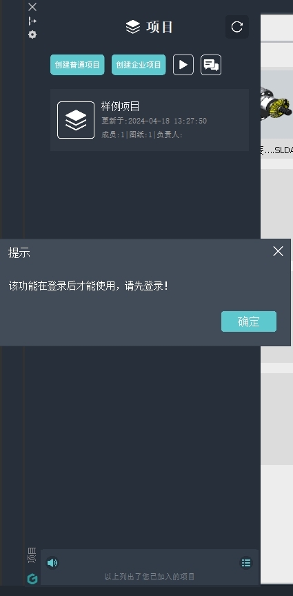 浩辰CAD看图王的项目功能,支持我们自己创建普通项目、企业项目,针对不同组织主体,会有不同的效果。