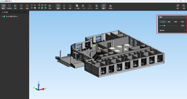 当我们在浩辰CAD看图王打开3D图纸后,会在3D图纸查看界面上方工具栏中,发现【爆炸】按钮,点击后即可开启3D图纸爆炸功能。