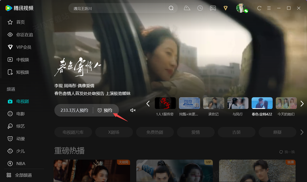 并且该剧已经在腾讯视频平台开启了预约,大家在电视剧频道找到该剧,然后直接点击【预约】按钮即可。