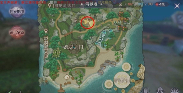 1、至于第二片碎片的获取方法,我们先要传送到寻梦港的位置,找到逆天神坛,在入口的位置有一个神坛守卫,头上是有黄色感叹号的,很好看出来,和他对话,先领取隐藏任务。