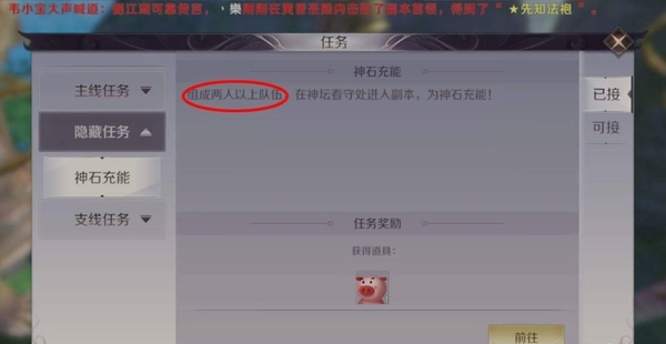 3、然后还会有一个副本任务,需要最少两个人一起完成,去攻击那个神石就可以了,能量充满之后就会退出副本任务。