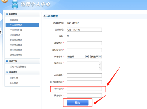 然后在弹出的个人中心界面中,点击左侧的“个人信息管理”,然后在右侧下方的“手机号码”一栏填入自己的手机号,最后单击下面的“提交”就可以了。