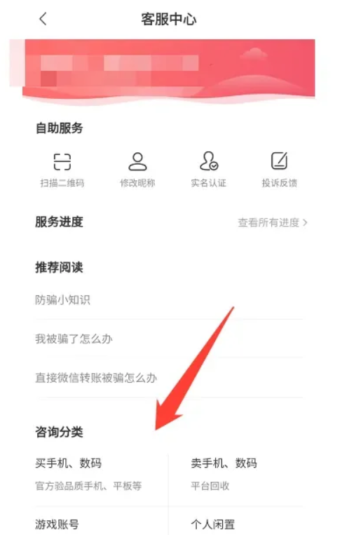 2、然后打开客服中心页面里,选择要咨询的类型。