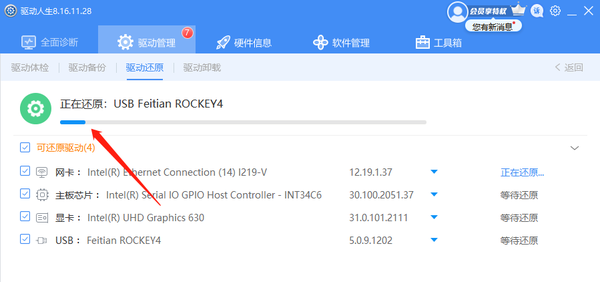 7,大家注意,在还原驱动的时候,软件上会有一个进度条,给大家展示还原的完成进度情况。