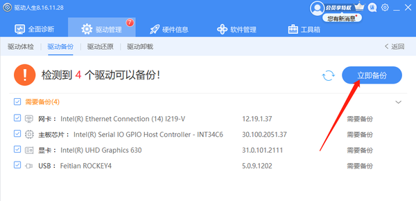 4,然后会再出现一个“备份驱动”选项,将其勾选上之后,在选择“立即备份”功能就开始备份了。