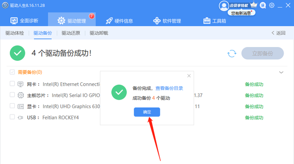 5,完成备份以后会出现一个小的窗口提醒大家已经备份完成了,点击蓝色的确定按钮就可以了。