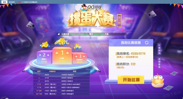 通过QQ游戏大厅参加掼蛋比赛,你将有机会与来自全国各地的掼蛋玩家同台竞技,一较高下。在这里,你可以感受到掼蛋比赛带来的酣畅淋漓的游戏体验。如果你也想参加掼蛋比赛,那就赶快下载QQ游戏大厅来加入吧。我们只需下载完成后,打开掼蛋游戏页面就可以看到比赛参加入口了。比赛时间为2024.5.7—2024.5.13,每日10:00—21:00开赛,大家可别错过了。
