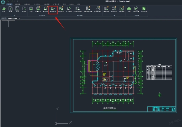 2.在成功打开dwg图纸后,我们需要在软件上方找到并点击“输出图片”这一功能。