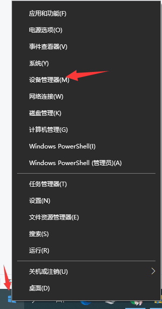 1,先同时按住键盘的Windows键和x键,也可以操作鼠标光标右键点击电脑桌面右下角的系统菜单选项,在弹出的菜单中点击“设备管理器”这一功能。