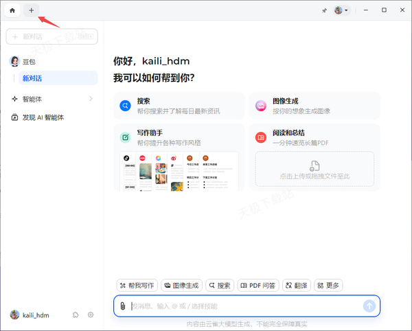 1、启动软件,点击顶部左上角的【+】打开新的标签页按钮。