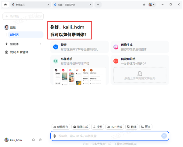 5、最后,回到豆包软件的主页中,大家就可以看到更改过后的文字样式了。