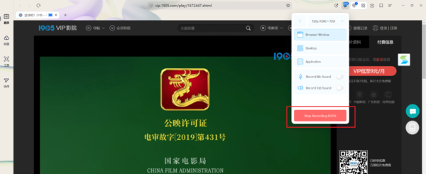 4.结束录制,在同样的位置打开此插件,然后点击下方“Stop Recording”结束录制即可。