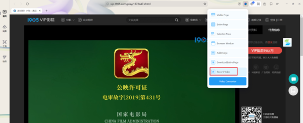 2.打开需要录制视频的页面,点击右上角“四个方块”-“Scrnli-截图录屏”,然后选择最后一行“Record Video”。