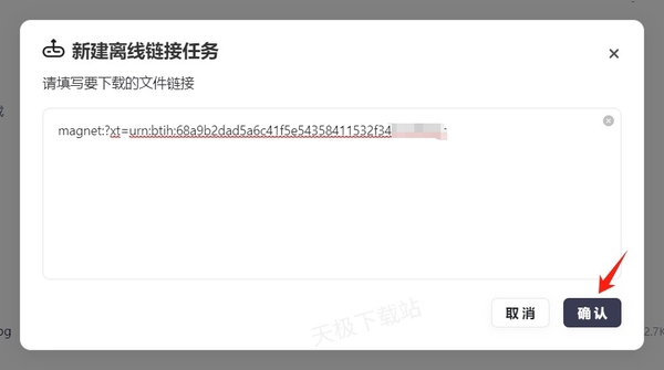 3.确认磁力任务:将事先复制好的磁力链接粘贴到相应的输入框中,点击“确认”按钮,系统会开始解析磁力链接,并转到解析页面。