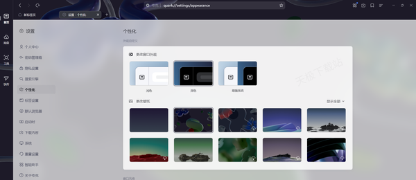 2.有趣的是,夸克浏览器的主页背景是会根据“浅色”和“深色”显示不同的效果的,小伙伴们快来试试吧。