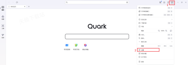 1.打开夸克浏览器,点击右上角三条横线,选择“设置”。