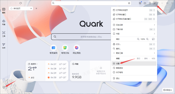 隐藏夸克浏览器自动侧边栏的技巧有2种,下面详细为大家介绍隐藏步骤。