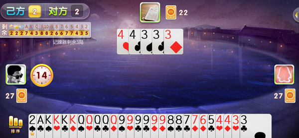 1.单牌大小比较,从大到小依次是:大王、小王、级牌、A、K、Q、J、10、 9、8、7、6、5、4、3、2。(A在连对、三张、顺子中被当做最小的1来使用)。