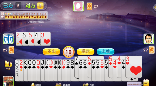 3.同一队玩家获得第1,2名的情况下。第3,4名玩家需要拿出手里最大的两张牌,依次贡献给第1,2名,然后还贡,逢人配除外。