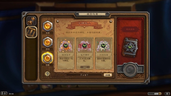 1,完成学徒阶段的任务以后就可以依次的打开我们的卡牌包了,建议顺序是追赶包、荒芜之地包、标准包。