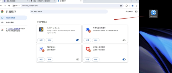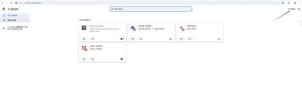 2、下载好豆包浏览器插件版后,我们在谷歌浏览器中打开扩展程序页面,并且在其右上角开启【开发者模式】。
