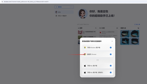 这里我们将以谷歌浏览器为例,展示豆包浏览器插件版安装操作: