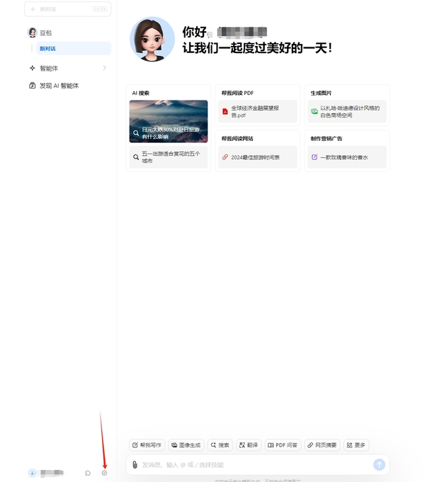 一、打开豆包,点击左下角【齿轮】图标,进入设置界面。